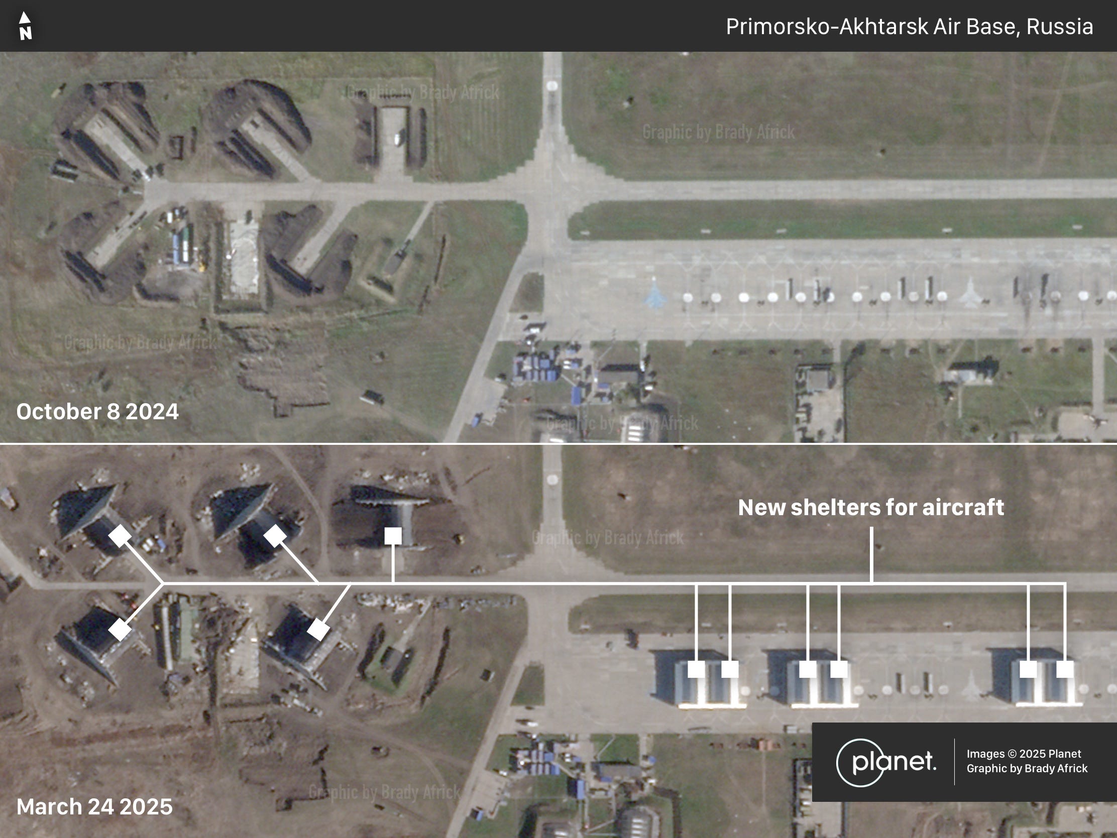 Welcome to Views From Above, a newsletter bringing you satellite imagery snapshots of major world events. Today, we are looking at Russia’s new shelters at air bases used in the invasion of Ukraine.