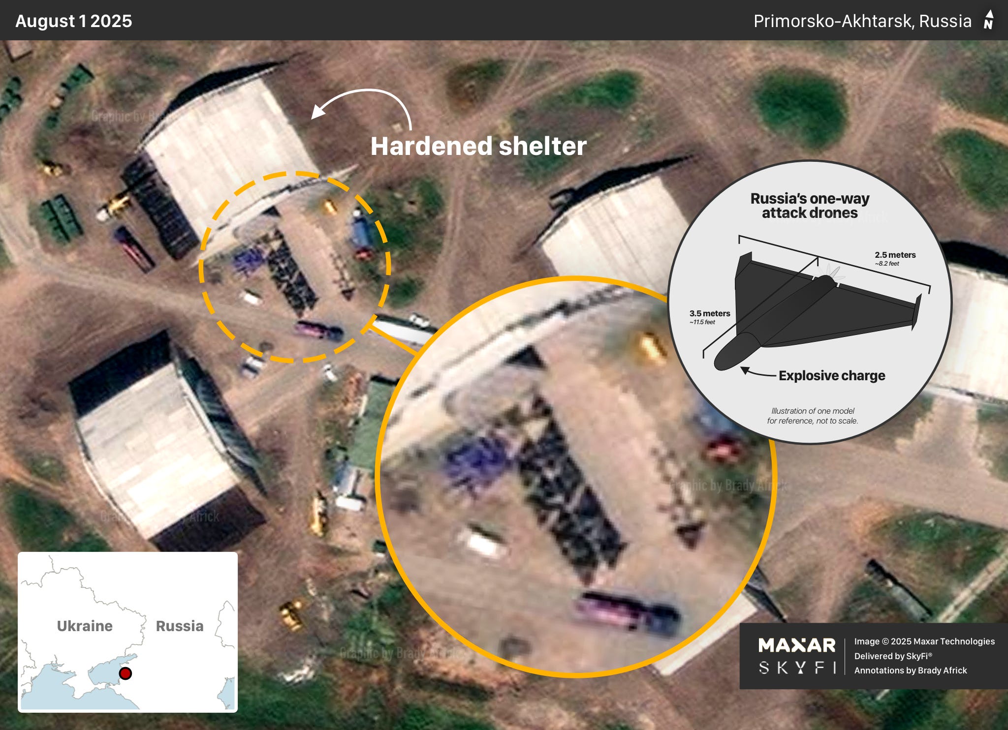 A Russian air base has new infrastructure for storing and launching one-way attack drones